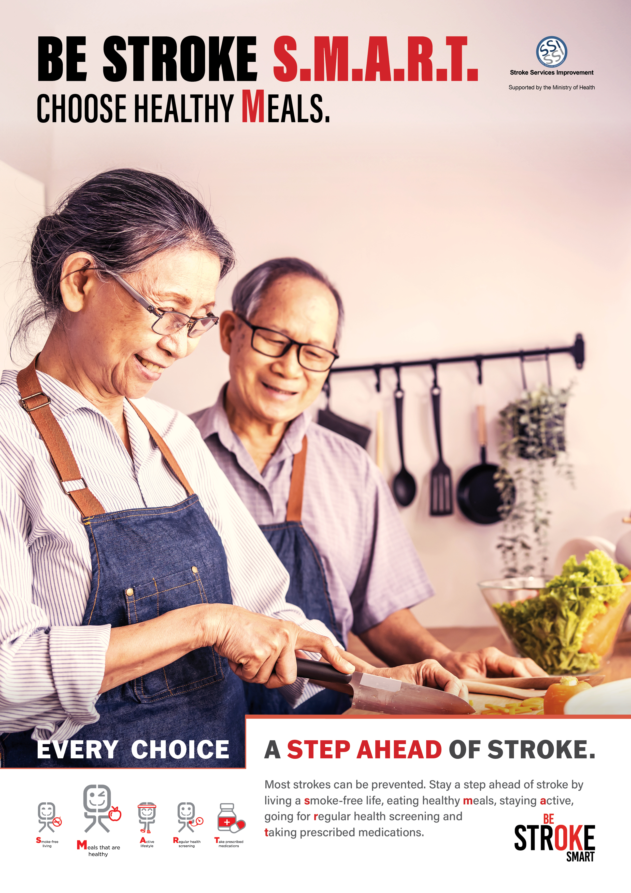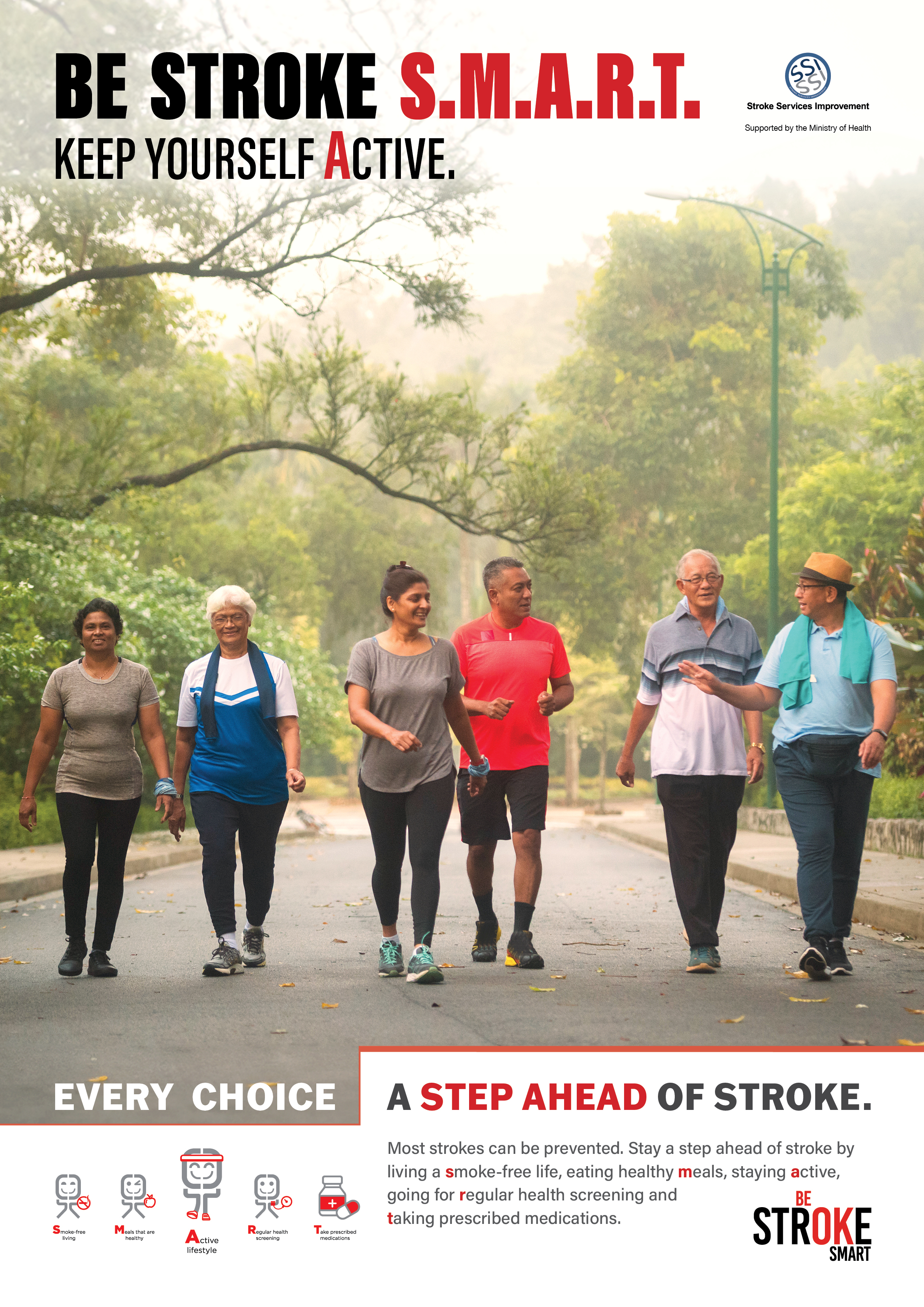 The stroke resource tool kit is part of outreach to promote public awareness on stroke. The toolkit includes downloadable softcopy of A4 posters, available in 4 national languages, for display at common places such as pantry, notice boards, walkway corridors, newsletters and etc*.