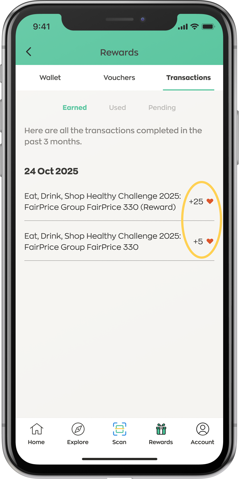 Each QR Ticket contains the healthpoints for one qualifying item purchased. If you had purchased 2 items, you should receive 2 QR Tickets. Participant to request from the cashier when purchasing a qualifying item at a supporting outlet. |