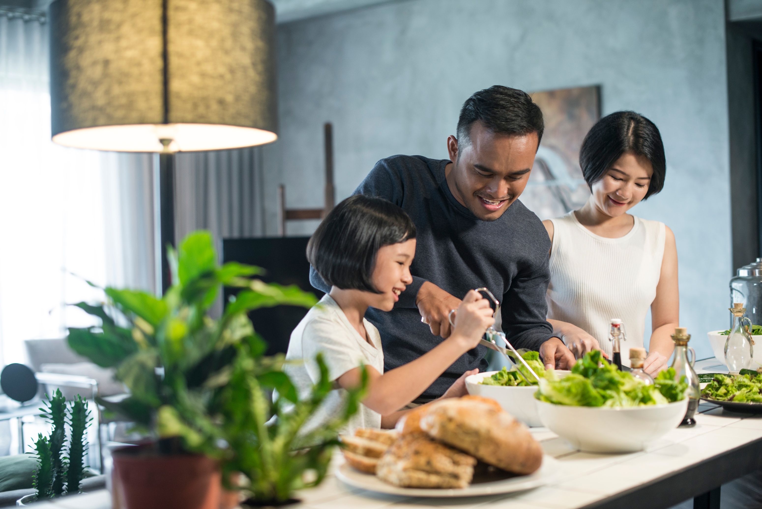 When you and your child are hungry for a snack, you can set a good example by choosing healthier options. For example, a wholegrain bun, a bowl of oats, vegetable dumplings, a steamed kueh, or fresh fruit and a handful of nuts.