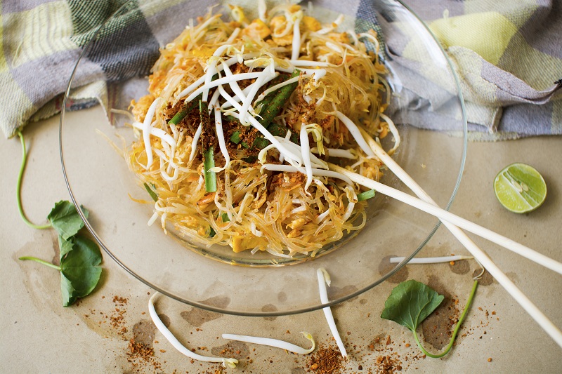 - Add beansprouts and mix well. Finally, add bee hoon and water.
